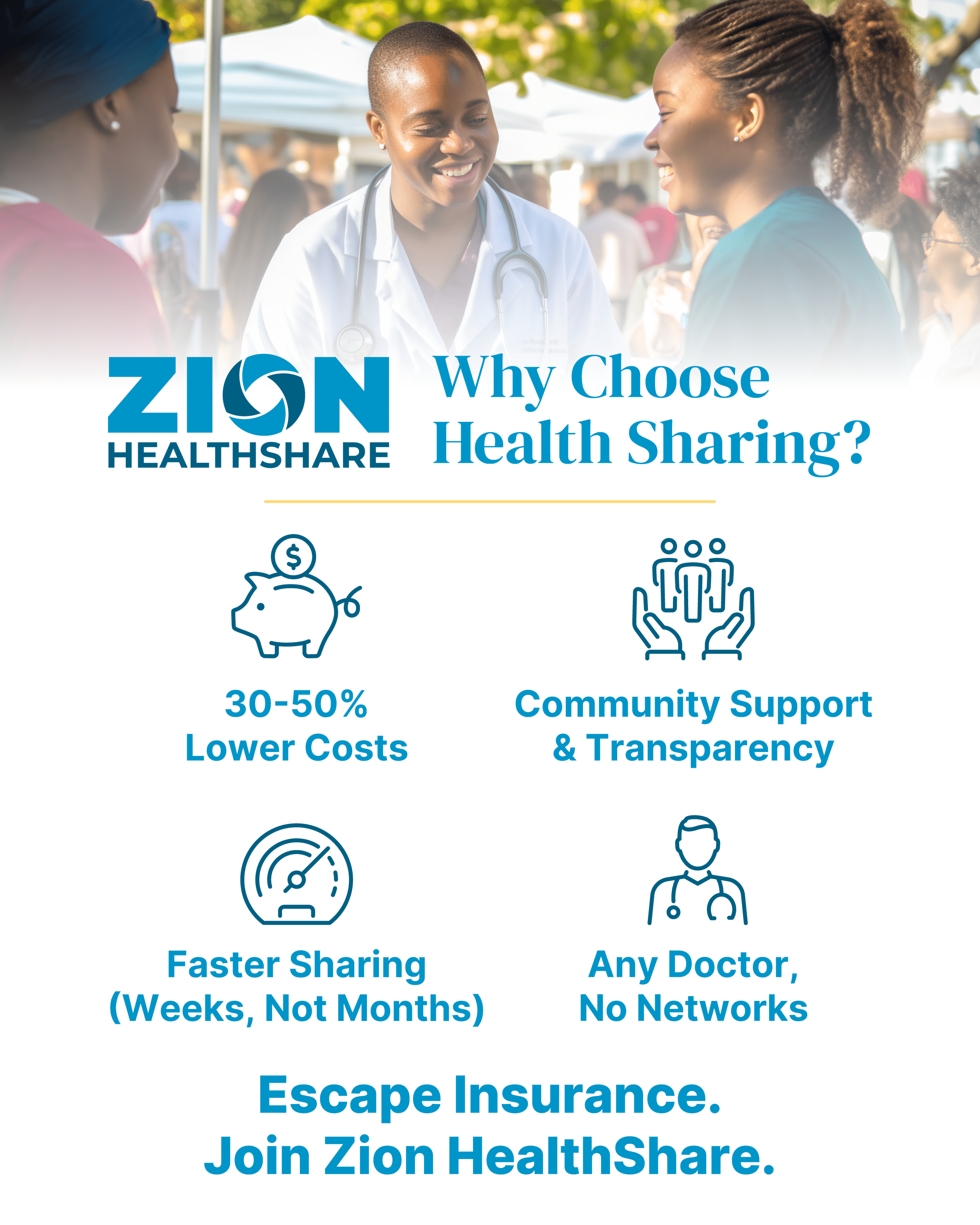 Escape Insurance. Join Zion HealthShare