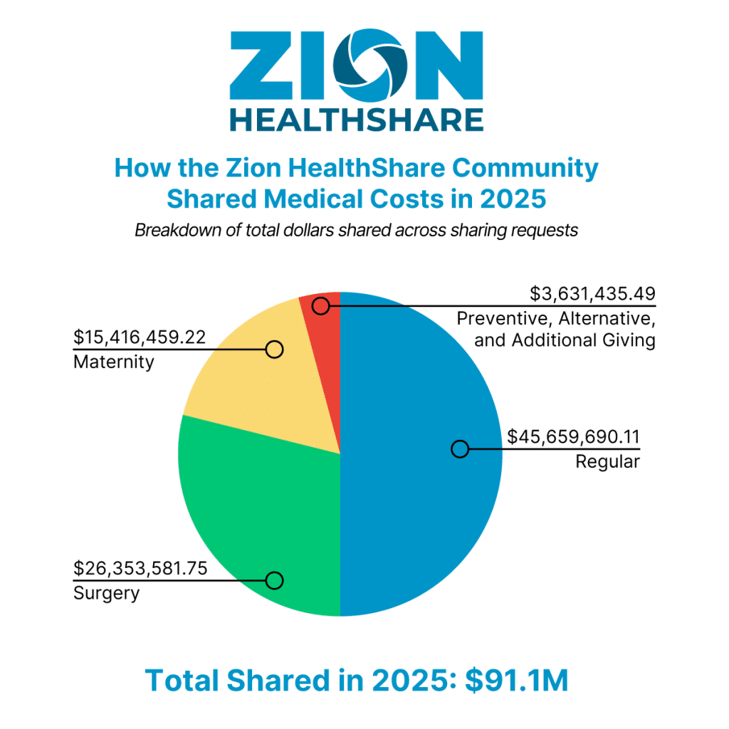 In 2025 alone, Zion HealthShare facilitated a total of $91.1 million in shared medical expenses. The breakdown reflects a wide range of healthcare needs: